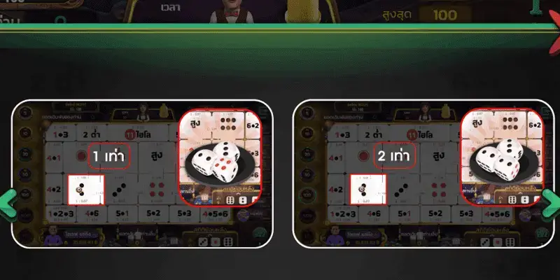 – เกมนี้มีให้เลือกวางเดิมพัน 2 วิธี คือ เต็ง และ คู่ โดยจะทำการเดาแต้มด้วยลูกเต๋า 3 ลูก ในเกณฑ์คะแนนที่ 11 เป็นตัวแบ่ง หากน้อยกว่า 11 จะคือแต้มต่ำ หากมากกว่าคือแต้มสูง ซึ่งผู้เล่นจะมีเวลาในการเดิมพัน 30 วินาที
