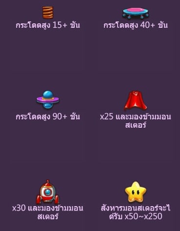 เกมนี้ไม่มีเพย์ไลน์ไม่มีรีล ใน สล็อตออนไลน์ เพียงผู้เล่นจะต้องทำการลุ้นในการกระโดดของตัวมอนสเตอร์ที่ถูกเลือกตั้งแต่ข้างต้นของเกม ยิ่งสูงเท่าไหร่ยิ่งได้ลุ้นรับเงินรางวัลยอดเยี่ยมง X400 เท่า และลุ้นโบนัสได้สูงสุดถึง 400,000 โดยกระดานในเกมนี้มีให้ลุ้นเงินรางวัลตั้งแต่ ที่เหยียบสีเขียว ที่เหยีบยสีฟ้า ที่เหยียบปูน ที่เหยีบยระเบิด ที่เหยียบส้ม และที่เหยียบเทา ในส่วนไอเท็มพิเศษที่จะช่วยให้กระโดดสูงขึ้น ได้แก่ กระโดดสูง 15+ ขั้น กระโดดสูง 40+ ขั้น กระโดดสูง 90+ ขั้น x25 เท่าของการข้ามมอนสเตอร์ x30 เท่าของการมองข้ามมอนสเตอร์ และสังหารมอนสเตอร์เพื่อรับ x50-x250 เท่า