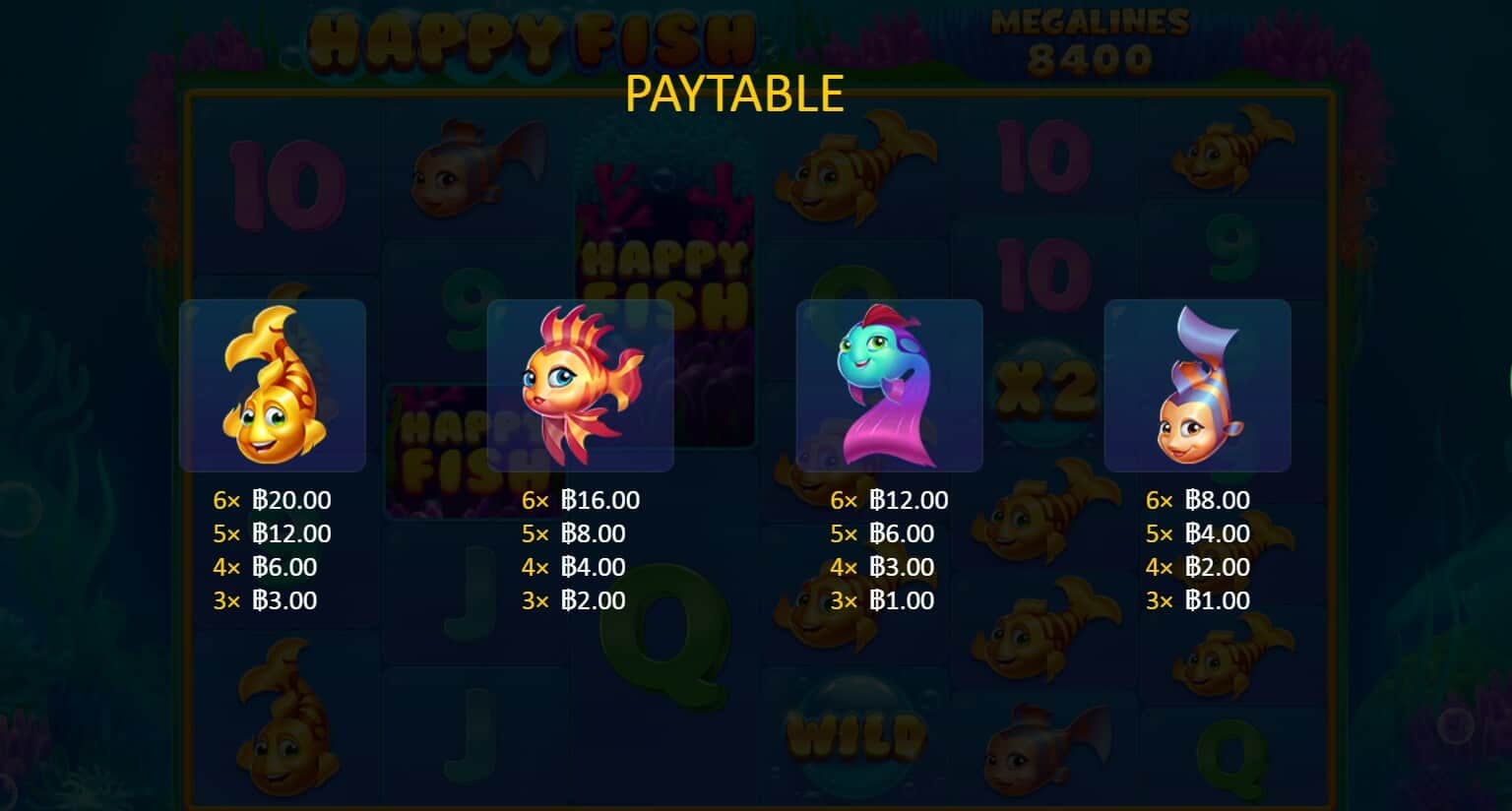 ข้อมูลต่างๆในเกมสล็อต Happy Fish สล็อตค่าย BOOONGO SLOT