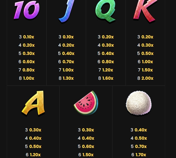 ร่วมสะสมเงินรางวัลตอบแทนแบบไม่อั้น เกมนี้พร้อมจ่ายเงินแบบไม่จำกัด slotxo123 รวมสัญลักษณ์ตอบแทนมากมาย ที่จะช่วยสร้างเงินรางวัลแบบไม่จำกัด ซึ่งได้เรียงตามลำดับการจ่ายเงิน จากมากลงไปน้อย ดังต่อไปนี้ ซาลาเปา แก้วมังกร เส้นบะหมี่ ข้าวปั้น แตงโม A K Q J 10 เมื่อมันได้ปรากฏบนวงล้อ 3 ตัวขึ้นไป จะได้รับเงินรางวัลตอบแทน ที่จ่ายตามลำดับ ยิ่งเดิมพันมากเท่าไหร่ ก็ยิ่งได้รับเงินรางวัลตอบแทน ที่เพิ่มมากขึ้นเท่านั้น เราขอให้นักพนันทุกท่านโชคดี เมื่อได้เล่นเกมนี้เล่เนกมนี้ ขอให้นักพนันทุกท่านโชคดี
