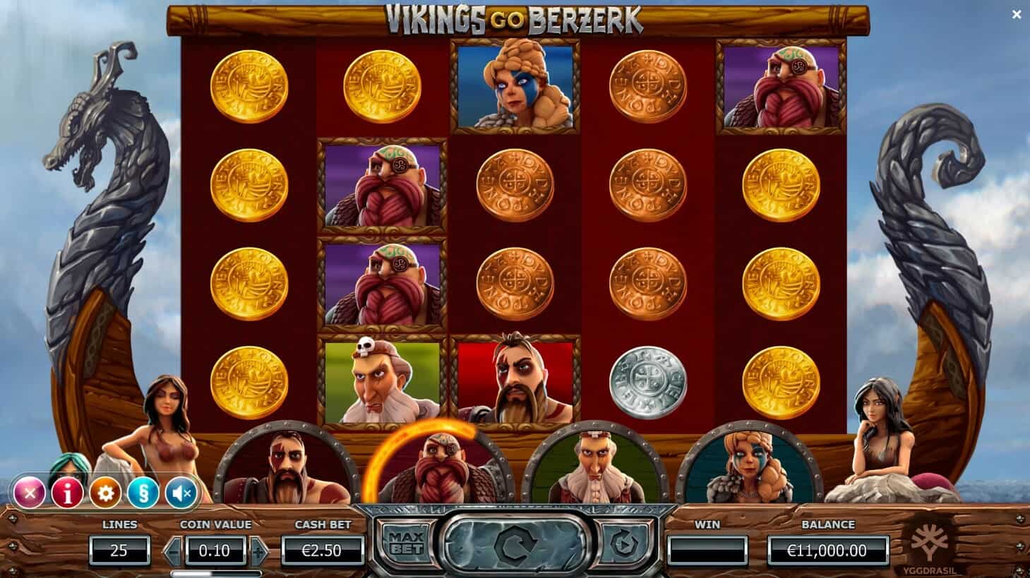 สล็อต Vikings Go Berzerk เกมนี้เป็นสล็อวิดีโอ 5 รีล 4 แถว 25 เพย์ไลน์ เล่นง่ายได้เงินไวเพียงทำการเริ่มเกมหมุนสปินให้ปรากฏสัญลักษณ์เดียวกันเรียงจากซ้ายไปขวาสามตัวขึ้นไปเพื่อรับเงินรางวัลตามอัตราการจ่ายของสัญลักษณ์นั้น ๆ และคุณจะได้ร่วมสนุกกับความบ้าคลั่งครั้งนี้เมื่อมันเกิดการสะสมพลังความโกรธของตัวละครนั้น ๆ จนเต็มจะทำให้เข้าสู่รอบฟรีสปิน และในรอบนี้สัญลักษณ์ไวด์จะเหนียวแน่นเป็นพิเศษ และมันจะทำให้เงินรางวัลของผู้เล่นทวีคูณแน่นอน